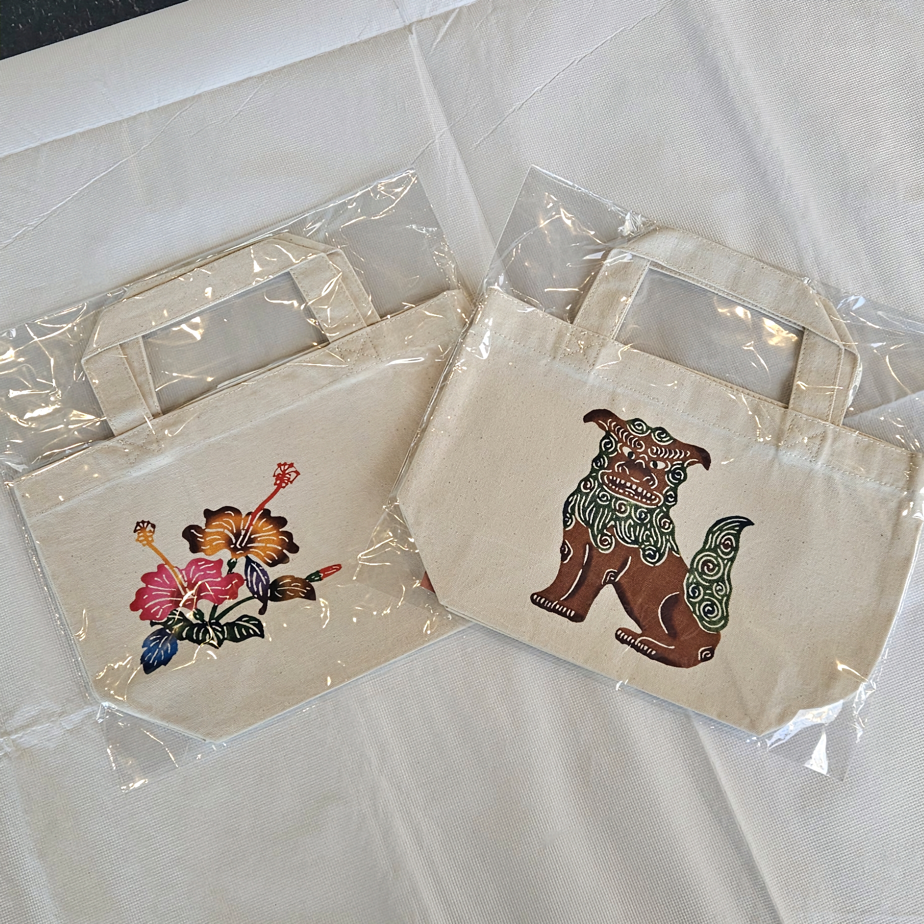 Asato Bingata Studio, located in Ginowan City, Okinawa was founded in 1982 and is run by Kazuo Asato and his son, Masatoshi. Bingata is a traditional Okinawan stenciled resist dyeing technique which dates back to the Ryukyu Kingdom (1429 – 1872). Bingata typically features a busy pattern of repeating nature motifs such as animals, fish, flowers and fauna using bright colors. Clothing featuring a Bingata design is worn during traditional Ryukyuan festivals and traditional arts performances. All of the products from the studio are crafted from beginning to end by a single craftsman.